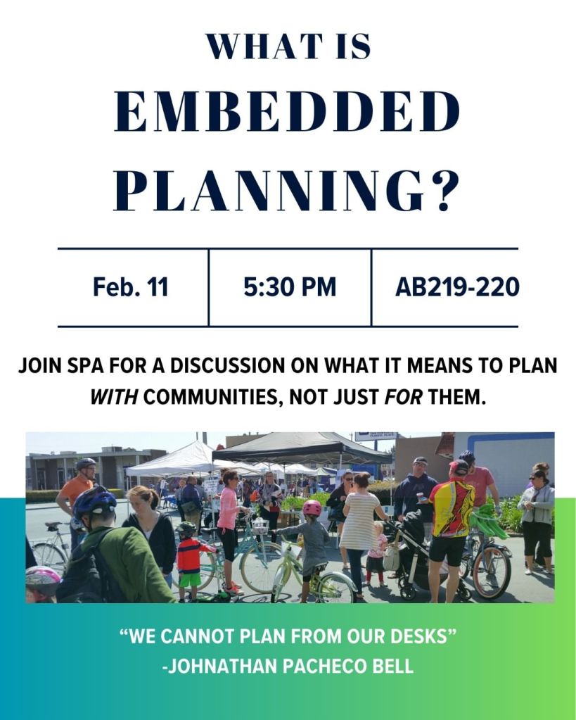 Embedded Planning is working directly from community spaces and places. Embedded planners engage residents in everyday environments, evolving practice from desk-based policy formation to on-the-ground collaboration in and from the neighborhood. This immersive approach helps planners gain a deeper understanding of local needs and aspirations, ensuring that community voices and needs significantly shape planning decisions. Embedded Planning is a timely evolution in the field that aligns with growing calls for more equity-centered, place-based, participatory practices. By embedding themselves into neighborhoods, planners build strong and authentic relationships, moving beyond one-off, transactional consultations to create lasting and impactful partnerships.