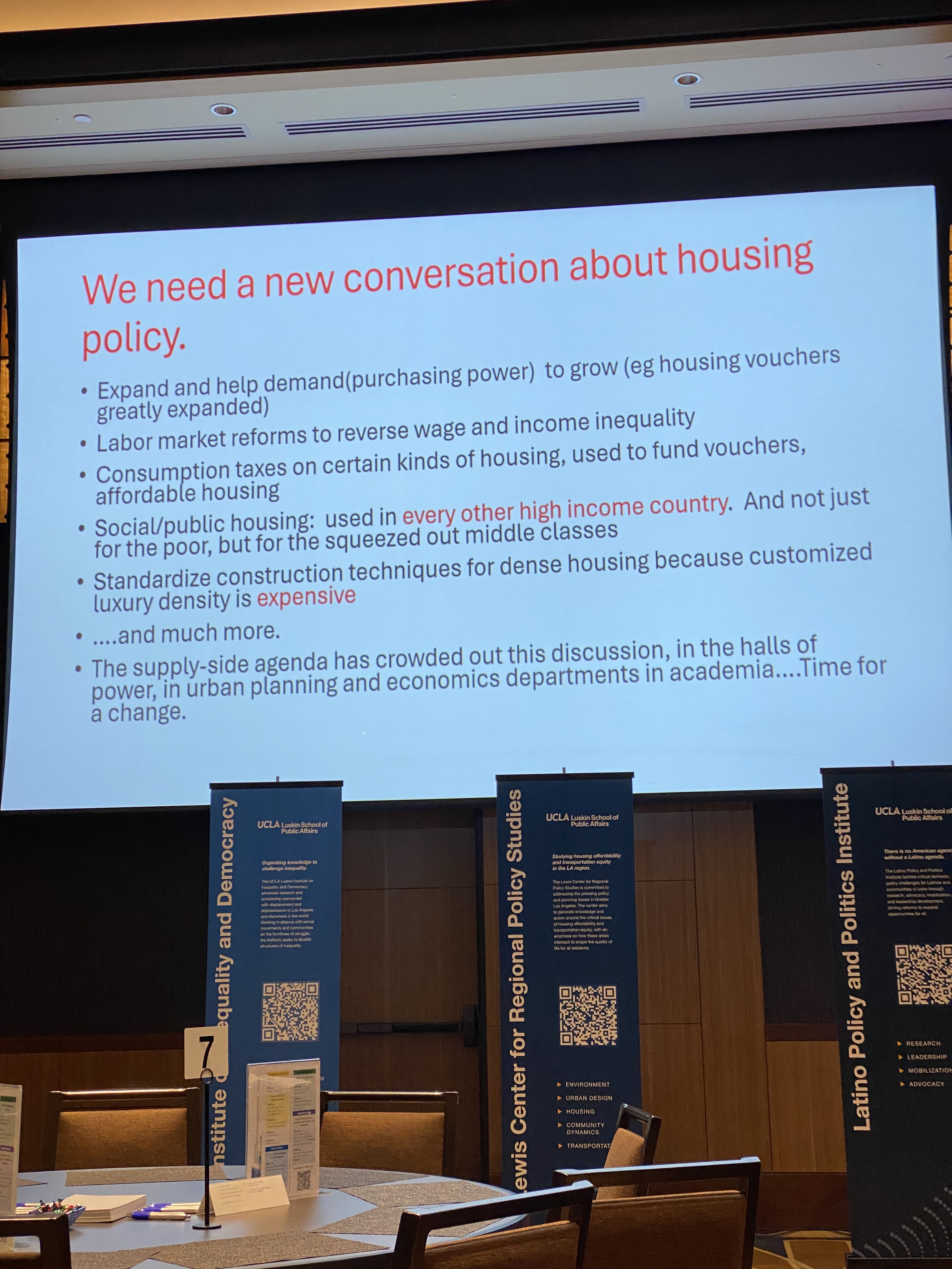 I enjoyed today’s UCLA Luskin Summit, especially the debate between the panels opposing and supporting SB 79. Shout out to Professor Michael Storper referencing Peter Hall’s book Great Planning Disasters and Professor Mike Manville working in the term “tautology” into this housing debate. Great to be back at UCLA Luskin School of Public Affairs.