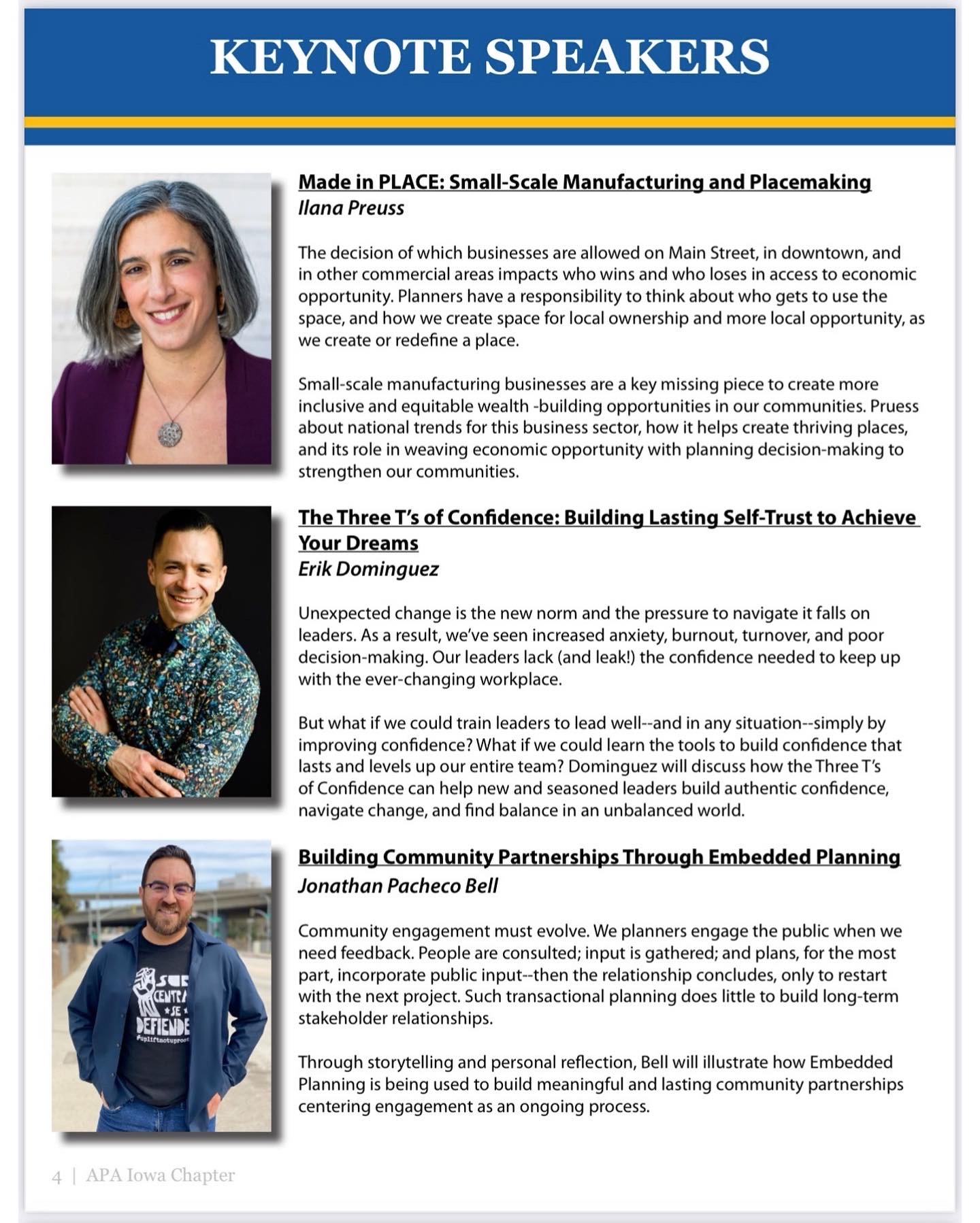 Honored to deliver the Friday, Oct 14 keynote at the APA Iowa Chapter Conference