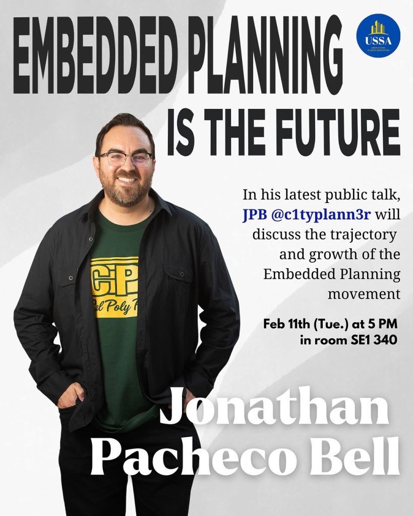 I’m doing the guest lecture “Embedded Planning is the Future” at UC Irvine with the Urban Studies Students Association. The event is free to all on Tuesday, February 11, 2025.