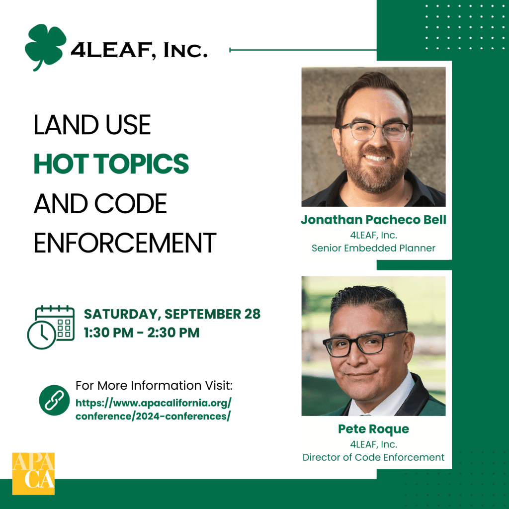 I’m moderating the panel session “Land Use Hot Topics and Code Enforcement” at the 2024 APA CA Conference in Riverside. Our session is on September 28th, Conference Day 1, at 1:30pm. Come through.