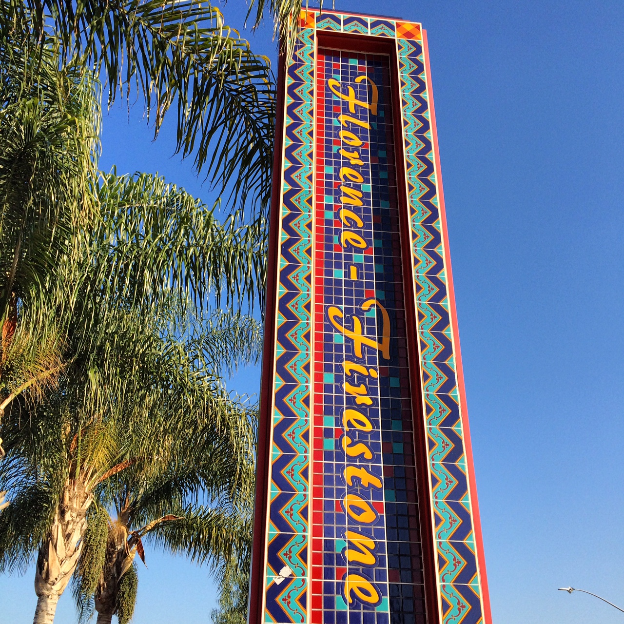 Florence-Firestone monument sign on Florence Avenue. Photo by Jonathan Pacheco Bell