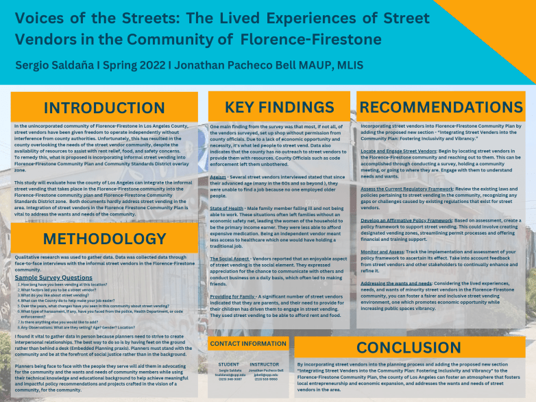 Voices of the Streets: The Lived Experiences of Street Vendors in the Community of Florence-Firestone. By: Sergio Saldana